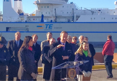 Maryland's Governor Martin O’Malley was joined by more than 100 partners and stakeholders at the Port of Baltimore this morning for a first-hand look at approximately 2,750 tons of fossilized oyster shell en route to Harris Creek in the Chesapeake Bay.